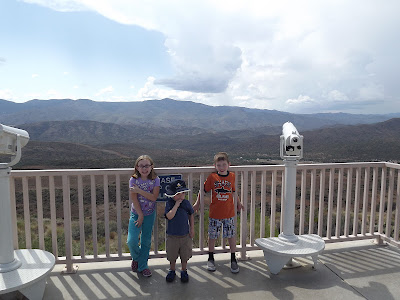 We finished checking out the castle ruins at about 4 o'clock, with just an hour left, we quickly hopped in the van and drive the 25 miles over to the Tuzigoot ruins to take a quick peek. As a side note, we drove through the cutest little town on the way to the ruins. I swear it was the model for radiator springs in Cars . . . they had an old gas pump, a surplus store, a hippy dippy store, it was kind of freaky weird and the main street in town was so old and small. The Tuzigoot ruins were neat because the kids could get a lot closer to them. The building inside was kind of icky as you went up the stairs to the top of the ruins because it smelled like animal pee, but other than that, really cool!